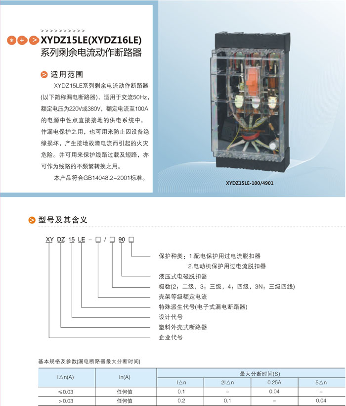 XYDZ15LE(XYDZ16LE)系列剩余電流動作斷路器