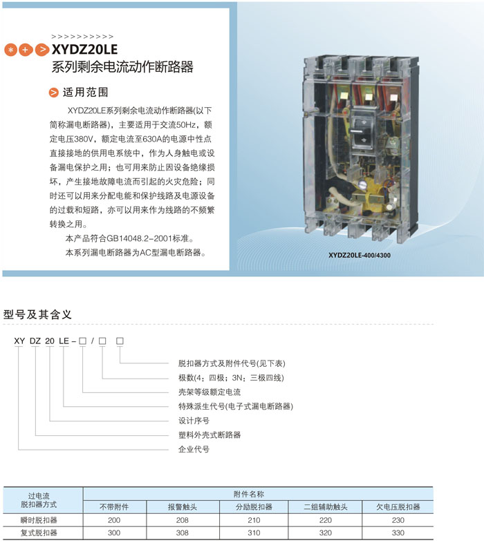 XYDZ20LE系列剩余電流動作斷路器