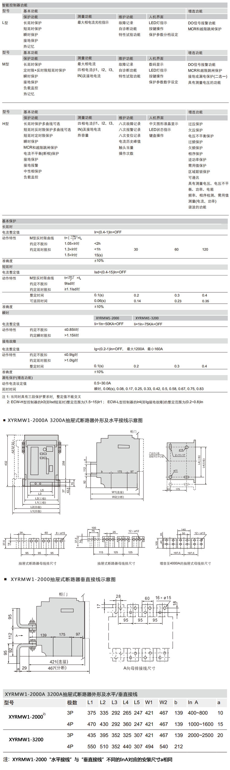 該系列智能型萬能式斷路器(以下簡稱斷路器),適用于交流50Hz,額定電壓至660V(690V)及以下,額定電流630A-6300A的配電網(wǎng)絡(luò)中,用來分配電能和保護(hù)線路及電源設(shè)備免受過載、欠電壓、短路、單相接地等故障的危害。斷路器具有智能化保護(hù)功能,選擇性保護(hù)精確,能提高供電可靠性,避免不必要的停電。同時(shí)帶有開放式通訊接口,可進(jìn)行“四遙”,以滿足控制中心和自動(dòng)化系統(tǒng)的要求。斷路器在海拔2000米時(shí)脈沖耐壓8000V(不同海拔按標(biāo)準(zhǔn)修正,最髙不超過12000V)。該斷路器不帶智能控制器及傳感器可作隔離器用,標(biāo)示為一一。